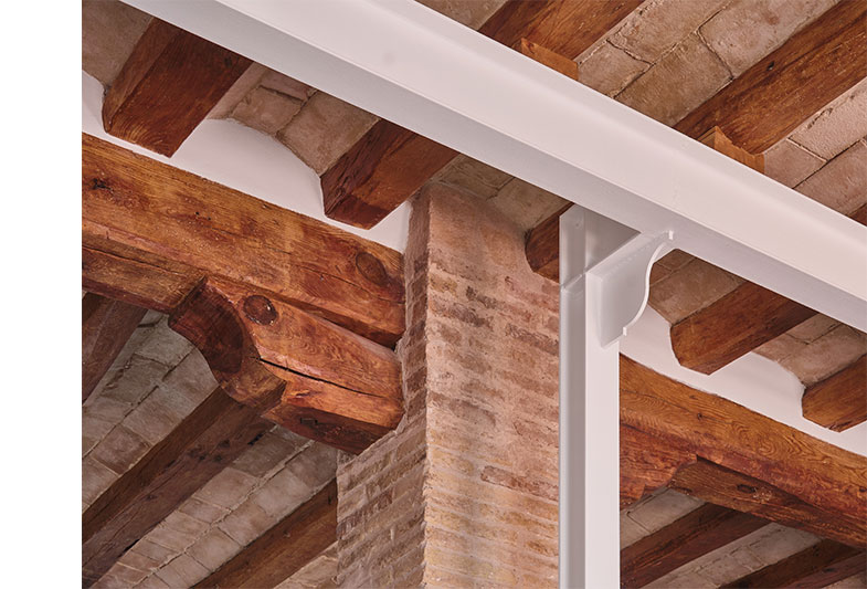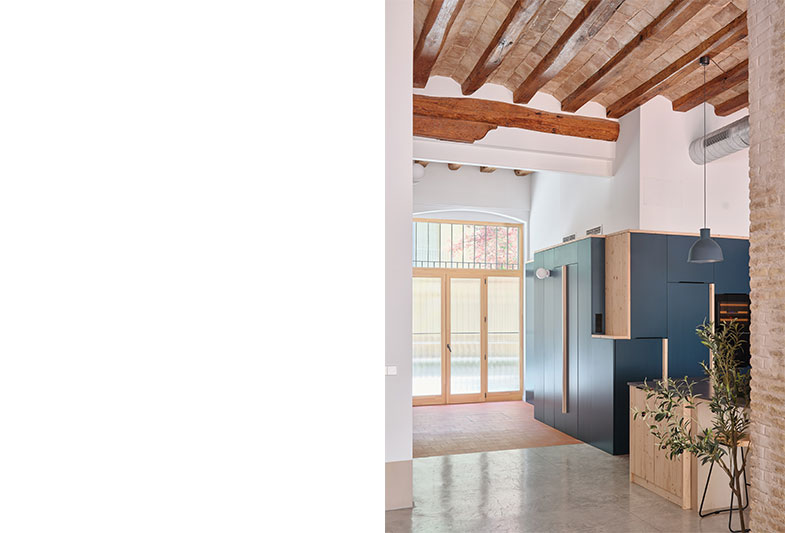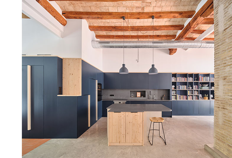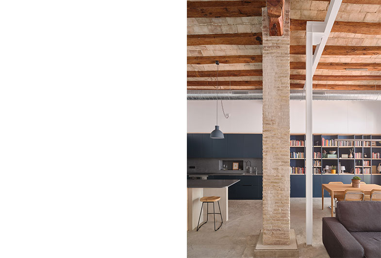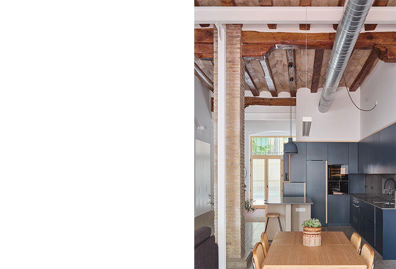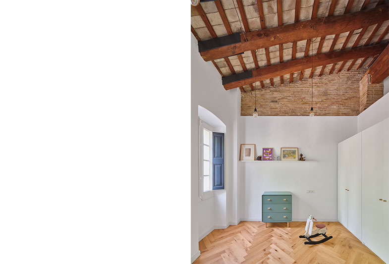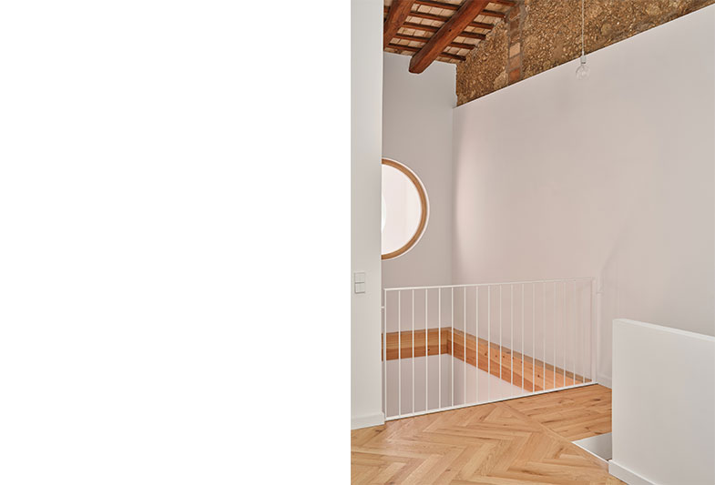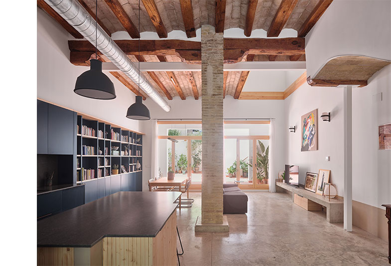 La transformació d’aquest habitatge comença per la teulada. Parteix de la idea de mostrar un element constructiu amagat, la coberta existent i els seus elements estructurals.